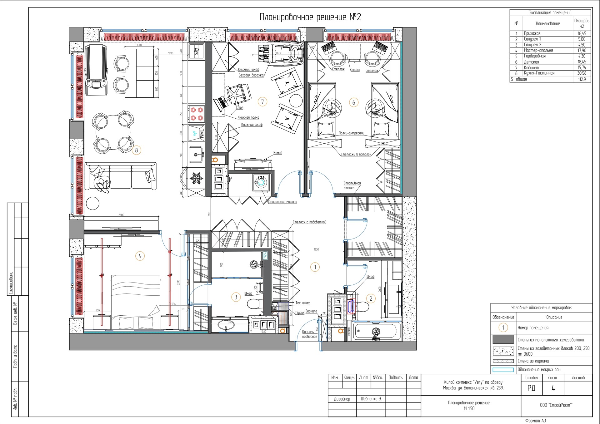 Комплект технических чертежей и сопроводительных документов, необходимых для реализации дизайн‑проекта. Включает планы демонтажа и монтажа перегородок, разводки электрики и сантехники, раскладки напольных и настенных покрытий, спецификации материалов и оборудования, а также другие детализированные схемы, по которым работают строители и подрядчики